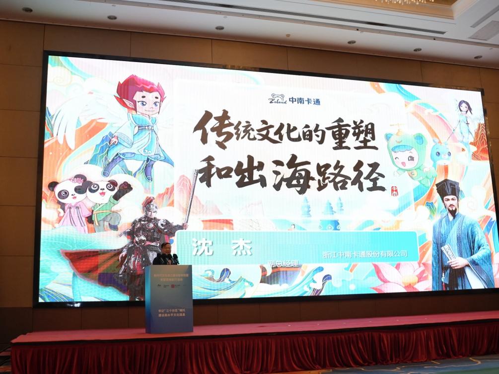 沈杰在题为“传统文化的重塑和出海路径”的报告中,分享了浙江中南卡通深入贯彻习近平总书记重要指示精神,以集约化、现代化、国际化为路径,构建数字化动漫制作体系与IP生态圈,推动优秀传统文化创造性转化的实践成果。公司通过《苏东坡与杭州的故事》《钱王传奇》等作品,深入挖掘历史人物的时代价值,以国际化方式讲述“中国故事”,实现了文化的全球传播,有效推动了中华优秀文化“出海”。